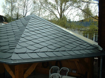 Biberschwanzeindeckung mit deutsch eingebundener Kehle![]() |
